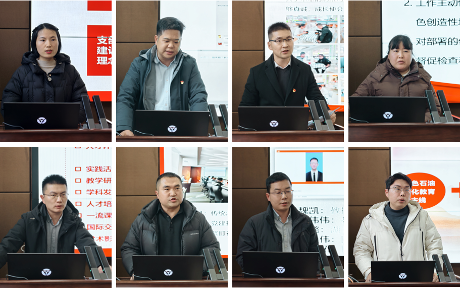 会上,7位教工党支部书记和1位学生党支部书记代表分别紧扣年度基层党建工作重点依次述职,全面总结年度履职成效,交流经验,查摆问题,谋划未来。