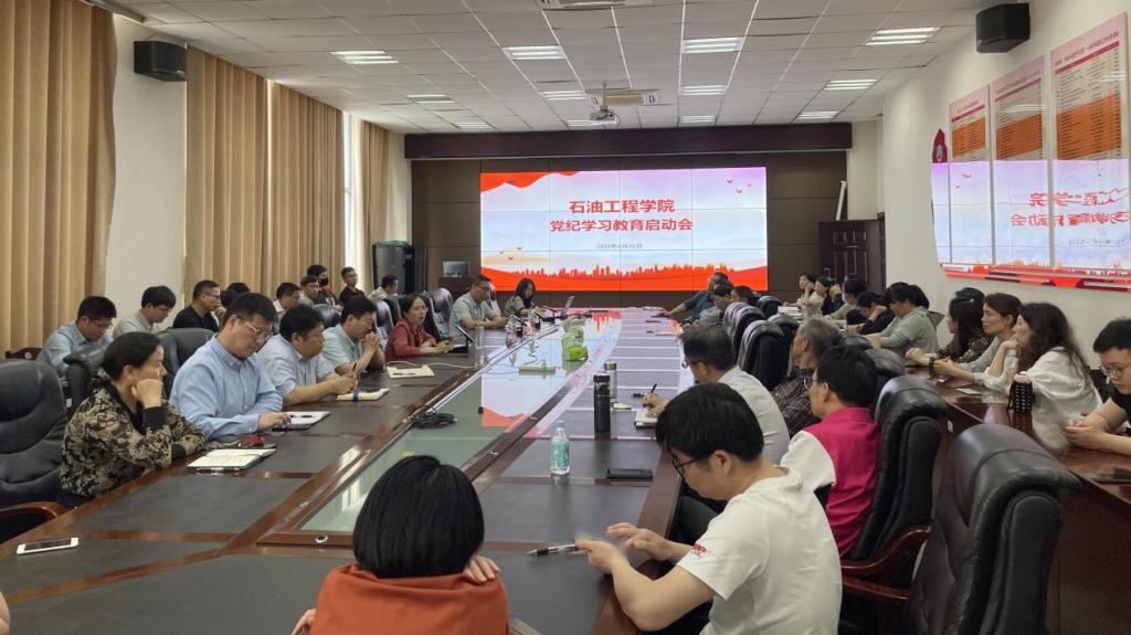 在石油科技大楼B113会议室召开党纪学习教育启动部署会,院党委书记张伟主持,全体教职工参加。