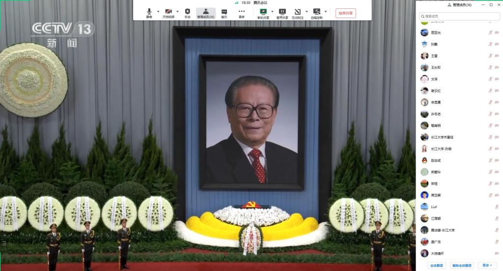 组织党员师生以线上集中或个人形式观看追悼大会现场直播,表达对江泽民同志的深切哀思。