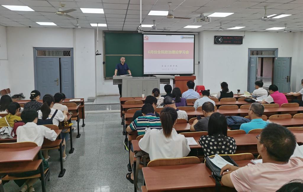 7月7日下午2时,Bet365体育投注 在武教B103教室召开6月份政治理论学习会,全体教职工参加,党委书记张光明主持。