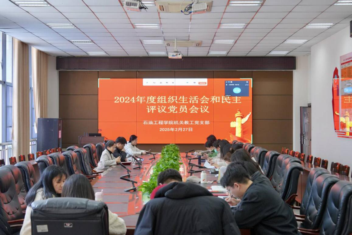 机关教工党支部在石油科技大楼B113会议室以“决胜双一流”为主题召开2024年度组织生活会与民主评议党员会议。院党委书记张伟、党委副书记张昊到会指导。支部书记杨小玉主持,全体党员参加会议。