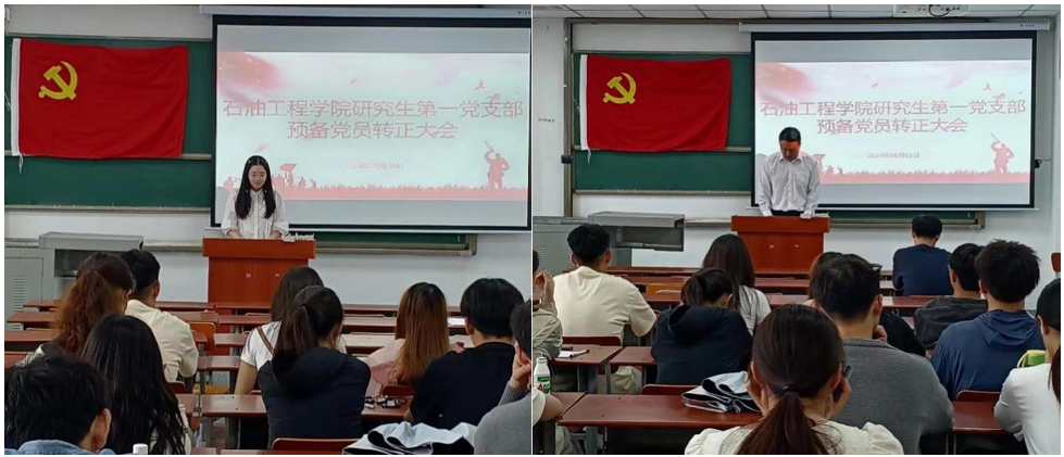 研究生第一党支部于武教A-104召开2024年上半年预备党员转正大会暨预备党员接收大会。本次会议由党支部副书记汪帮哲同志主持,支部书记韩清越及全体支部党员参会。