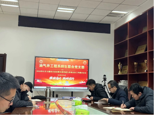 (通讯员 余义兵 赵驰)1月16日上午,油气井工程系师生联合党支部在石油科技大楼C111开展2024年1月份主题党日活动暨支部党建与系部业务工作融合会议。活动采用线下线上相结合的形式进行,由支部书记余义兵同志主持,全体党员同志参加。