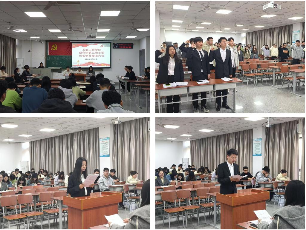 研究生第二党支部下半年学生党员转正暨预备党员接收大会于武教A-310举行。本次会议由芮烁同志和王颖同志主持,会议讨论了关于陈雅楠等4名同志申请转为正式党员和徐云峰等6名同志接收为预备党员的问题。