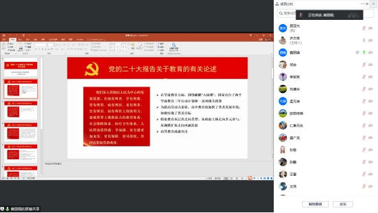 在讲授党课环节,黄丽娟同志给大家讲授了主题为《党的二十大报告关于教育的有关论述》的党课。