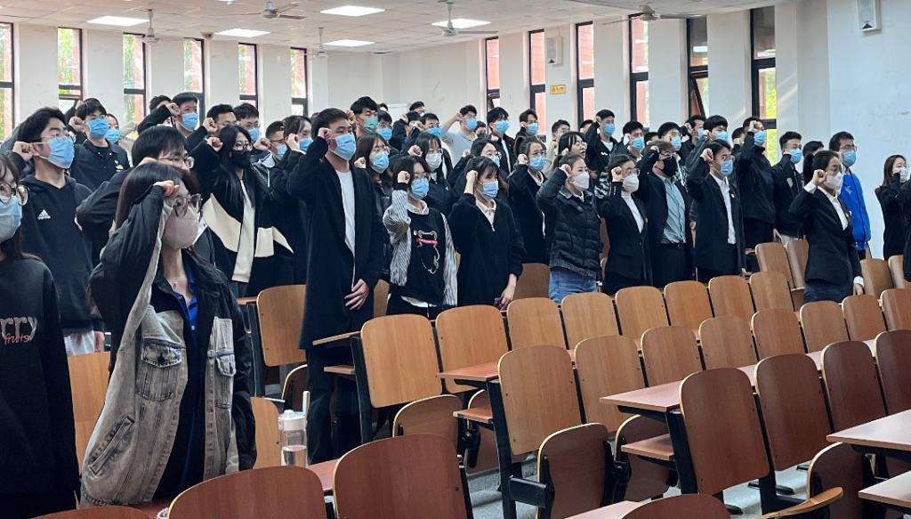 最后,赵林同志做总结讲话。他强调,作为青年学生党员,要做到政治上的忠诚、纪律上的严格、行为上的典范,在学校新一轮疫情防控工作中敢于担当、同心战“疫”,充分发挥党员先锋模范作用,共筑疫情防控安全屏障。
