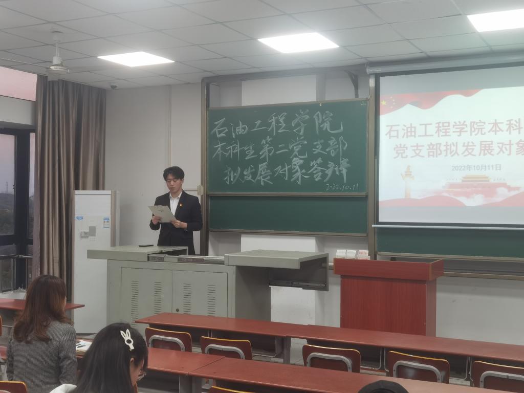 (通讯员 任堂政)2022年10月11日下午六时,Bet365体育投注 本科生第二党支部于B-402召开拟发展对象预审答辩。本次会议由支部任堂政同志主持,党委副书记刘娥老师,支部29名党员,支部16名拟发展对象参会。