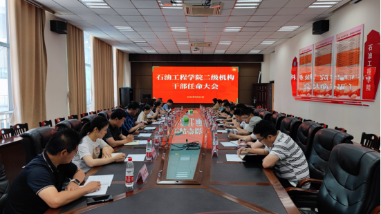 在石油科技大楼B113会议室以线上线下结合的方式召开了二级机构干部任命大会,会议由院党委副书记张昊主持,全体院领导、新任干部,教师代表参加会议。