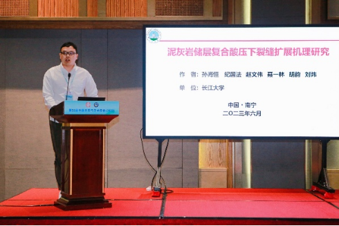 会上,孙海恒作题为《泥灰岩储层复合酸压下裂缝扩展机理研究》的报告,向全国专家、学者、同行交流了长江大学在非常规油气储层改造理论与技术研究中取得的最新进展。