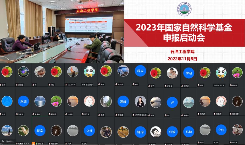 2023年国家科学基金申报启动会在石油科技大楼B113室线上线下同步召开。院领导、学科办和所有符合申报条件的老师参加会议,会议由院长江厚顺主持。