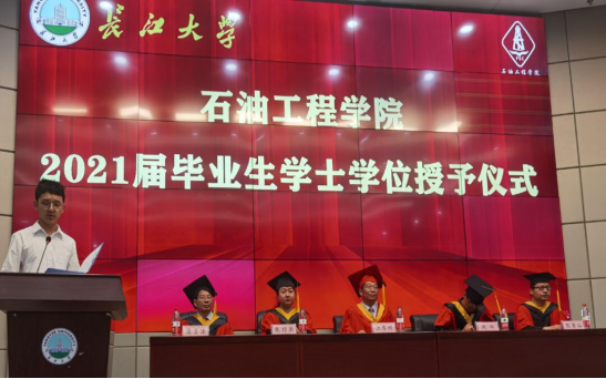 院长江厚顺教授携同导师代表出席学位授予仪式,共同见证三百余名2021届毕业生顺利完成学业,从长大油工院迈向人生新征程。