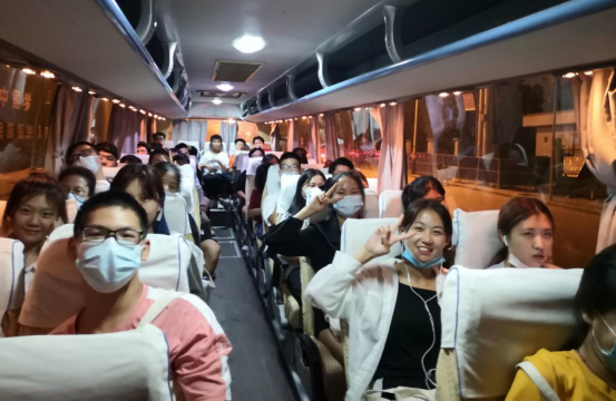 86名油油志愿者跟随带队老师沈伟正,组建成一支热心团结的普查员队伍,乘坐大巴,前往社区,开展人口普查工作。