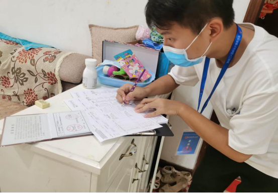 到达目的地之后,油油志愿者们立即前往各自负责的社区,在社区居委会工作人员的带领下,进入居民楼,入户调查。“请问有人在家吗?您好!我是马号社区居委会普查员,请问方便我们进去吗?我们需要您提供户口本或者身份证等相关证件做相关的信息记录,十分感谢您的理解与配合,我们将会对您的个人信息进行保密处理。普查全流程加强对公民个人信息的保护,严禁向任何机构、单位、个人泄露公民个人信息。”马号社区志愿者闫广域同学在上门询问时亲切地问道。与此同时,在该社区的其他志愿者也正按部就班地进行着调查工作。一声声敲门声、一次次询问、一点点推进,组成了油油志愿者们一天的普查工作。