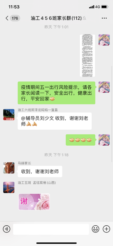 向全体学生发布了《疫情期间五一出行风险提示》,对出行的前期准备、旅途防护、就餐购物和住宿安全等做了详细的提示。同时制定了辅导员-班主任-安全员三级安全体系,全面实时了解学生动向,对于出行的学生进行的填表登记,按照程序填报出行信息和安全健康信息,加强学生在五一以及居家时期的安全保障。