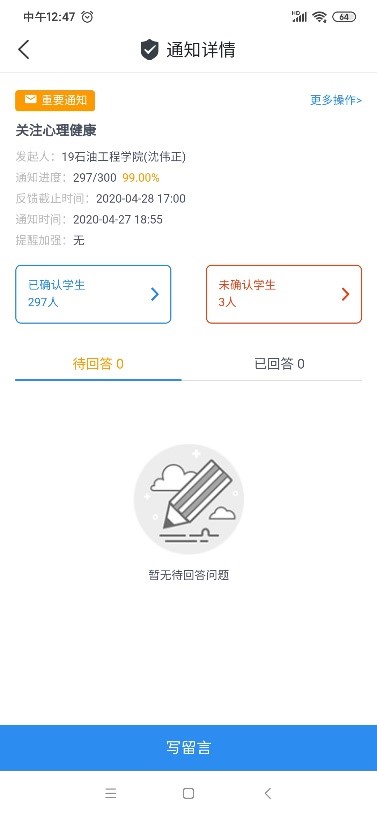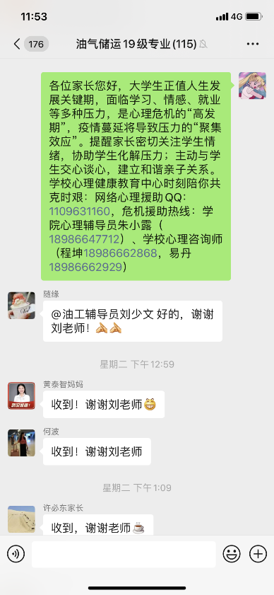 通过辅导猫以及班级QQ群等形式,对学生开展了心理健康教育工作,鼓励学生科学求助,助力学生在疫情期间化解压力。