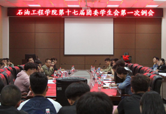 团委学生会于石油科技大楼B113会议室召开新学期第一次例会。学工办主任沈伟正,团委书记史永波以及学工办老师代表出席会议,会议由学生会主席陈金建主持,学生会全体成员参加本次例会。