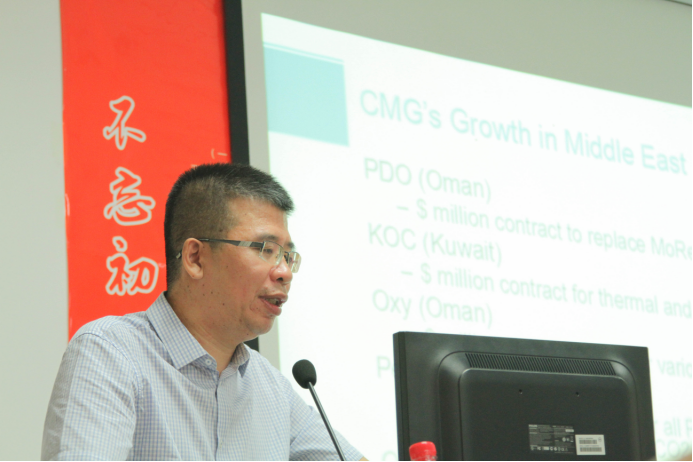 刘大宝对于CMG的基本内容及国内现有形势进行简要介绍,并汇报了CMG在中东、亚洲的各石油高校的使用情况。同时,他表示CMG未来形势十分可观,并强调:“CMG虽然在1988年才引入,但在输入管理这方面CMG的规模最大。为什么会规模大,因为CMG秉承着‘我精通我擅长的领域,坚持做好’的理念,在过往42年中只做这一件事,深刻诠释了什么是始终如一。”会上,他表达了对CMG数值模拟软件能在Bet365体育投注