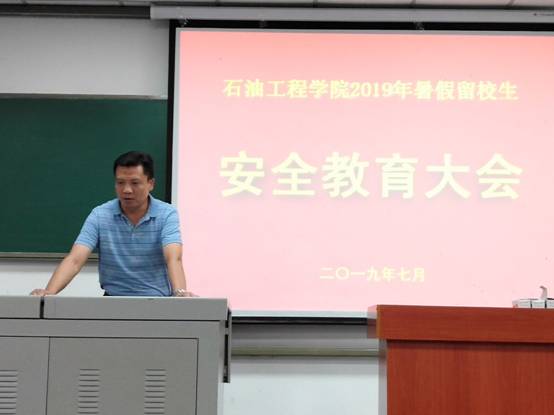 首先院党委副书记王辉讲话,他从保证与家庭的联系、安全是一切工作的前提、不虚度留校时光、学工办老师为暑期留校生的安全保驾护航、每位学生都需签署安全责任书等五个方面说明了本次大会的目的,着重强调了暑期留校安全的重要性,要求每位同学认真学习并签署留校安全责任书,做到在保证安全的前提下实现留校的学习生活目标。