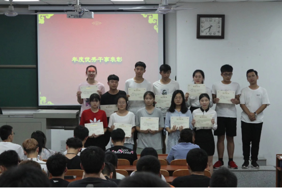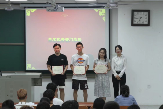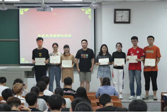 由主席团李子豪学长为他们颁奖。同时,也通过对优秀部门和成员进行表彰,激励学生会成员奋发向前,再创佳绩。