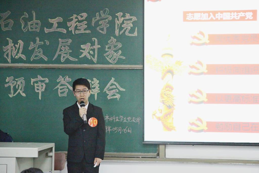 每一位答辩选手都是油工院最出色的学子,他们不仅仅是学习中的佼佼者,成绩名列专业前茅,更是长江大学各个社团组织以及各类活动的引领者,带领同学们积极进取,奉献自己。在答辩的自我陈述部分,大家结合自身实际情况,具体深入地谈到了对党的认识、入党动机和自身的现实表现。在党识党情考察环节,每位答辩者都要从准备的题目中抽取一题作答。这些题目涉及到中国共产党的宗旨、党的性质、党在社会主义初级阶段的基本路线、党员的权利与义务、我国现阶段的基本矛盾等,大部分答辩者经过长期思想政治理论学习和熏陶都能流利作答。