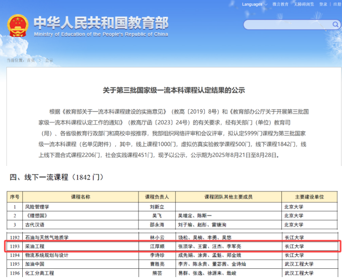 取得新突破!由江厚顺教授担任课程负责人,张顶学、王雷、汪杰、李军亮老师为团队成员的《采油工程》喜获线下一流本科课程认定。这是Bet365体育官网