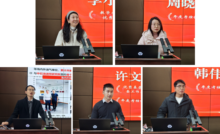 先进个人代表周玉辉、许文俊、李小艳、韩伟伟、周晓峰依次上台发言,分享了各自在基层党建、科研创新、教育教学、公共事务、管理服务方面的心得与感悟,表达了对Bet365体育投注