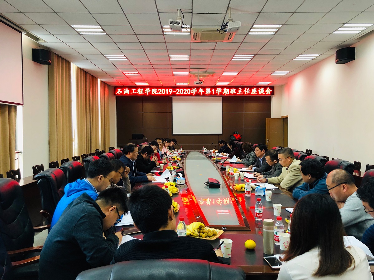 (通讯员  李旭荣)2019年10月17日下午,Bet365体育投注 教学委员会在石油科技大楼B-113,组织召开了基础课教师、班主任老师座谈会针对目前双一流专业建设人才培养质量亟待提升问题,就如何进一步做好本科教学工作提升教学质量,助推学校双一流专业建设,实现学校教育事业的可持续发展展开专题座谈、研讨。高等数学、线性代数、大学物理、大学英语等基础课教师、Bet365体育投注 各班班主任老师、教学委员会全体委员与会。院长江厚顺、主管教学副院长张引弟、主管学生副书记刘娥参加了座谈会。会议由教学委员会主任欧阳传湘教授主持。