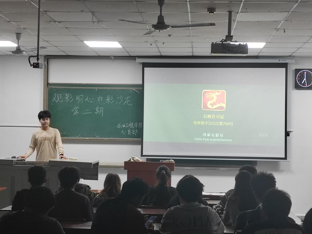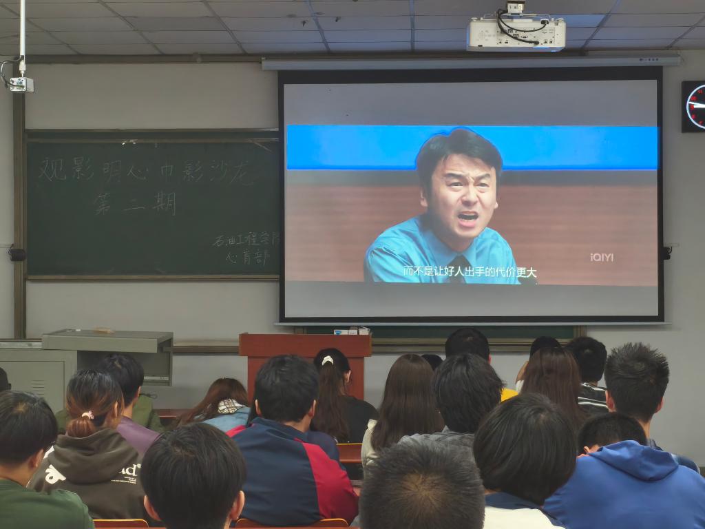 心育特色活动——“观影明心”心理电影沙龙。本期播放的影片是《第二十条》,由心育部的学生干部带领同学们透过电影走进现实法治场景,感悟法理与情理交织下的人性抉择,学习如何以法治思维守护自身权益与心理健康。活动由油工22404班钱德乐主持,共80名同学参加。