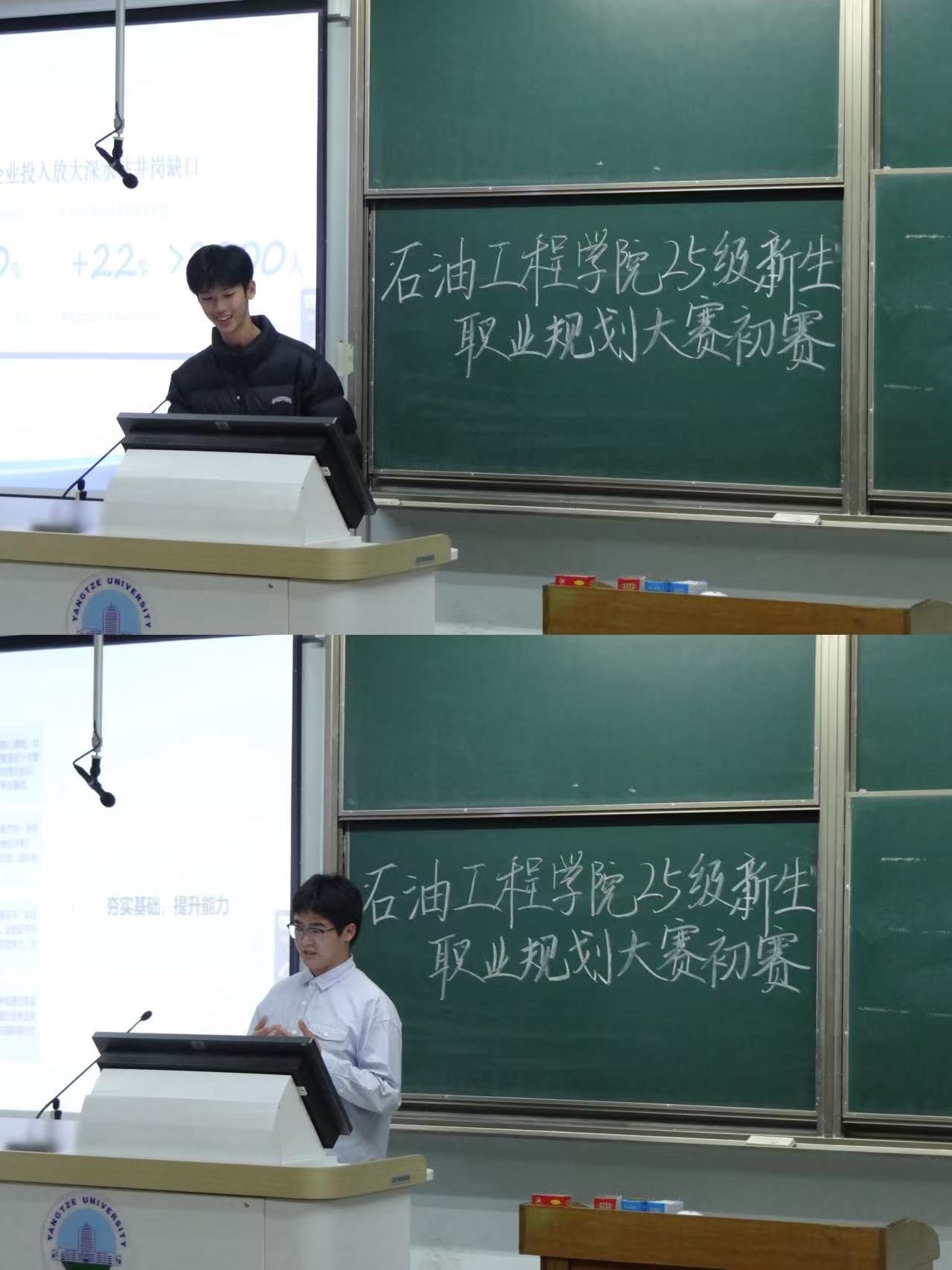 在13号教学楼D222教室成功举办大学生职业规划大赛初赛。本次比赛特邀2025级辅导员陈金建、周雨薇担任评委,13名参赛选手同台竞技,共同呈现了一场内容充实、展现卓越风采的职业规划展示。