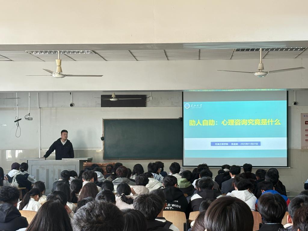心理专干朱小露、辅导员陈金建两位老师以“助人自助:心理咨询究竟是什么?”为主题,为200余名2025级本、研学生干部开展专题培训,助力学生干部提升心理关怀能力。