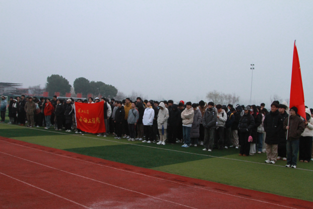 于武汉校区田径场举办了主题为“冬晨旗扬催奋进,新年备考逐梦行”的升旗仪式。党委副书记张昊带领全体辅导员以及24级全体本科生参加了本次活动,仪式由油工22404班洪紫嫣主持。